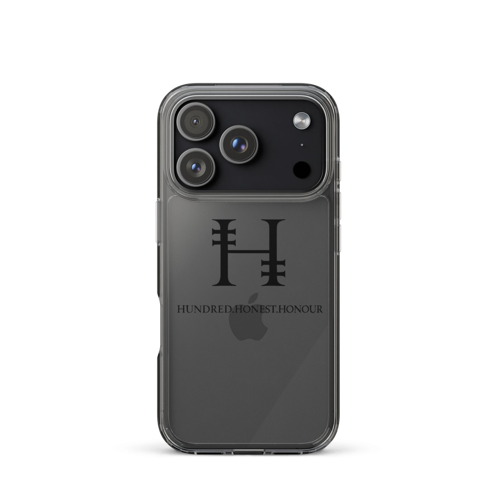This sleek Hundred.Honest.Honour® transparent case for iPhone® 11-17 protects your phone from scratches, dust, oil, and dirt. It has a solid back and flexible sides that make it easy to take on and off, with precisely aligned port openings. SourceVera® verified and authenticated.
